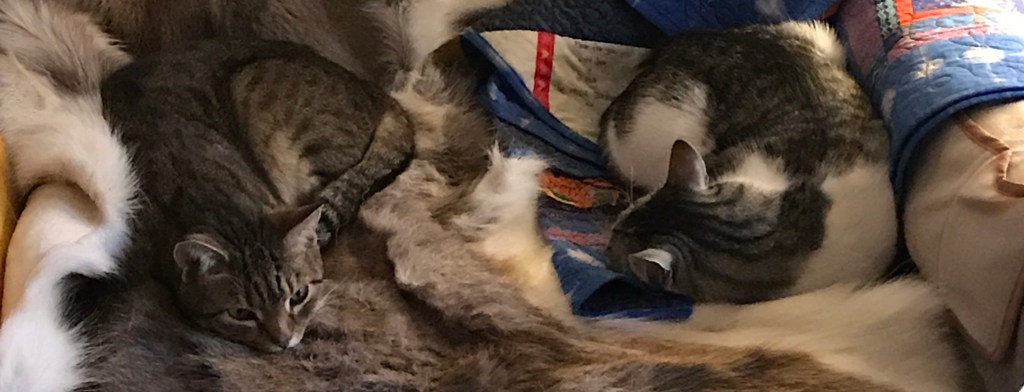 Having been laid off and NYC becoming a ghost town, younger daughter and partner wisely made the decision to leave. Packed up a U-Haul and the cats and moved in with us August through mid-November which was a delightful time of reconnecting since time with younger daughter had been on the slim side since they moved to NYC three years before. And the cats were an added bonus. This idyllic time ended abruptly when partner got a job in Richmond and they moved in with partner’s family in Richmond. However, until they find a Richmond apartment of their own, we get to keep the cats.