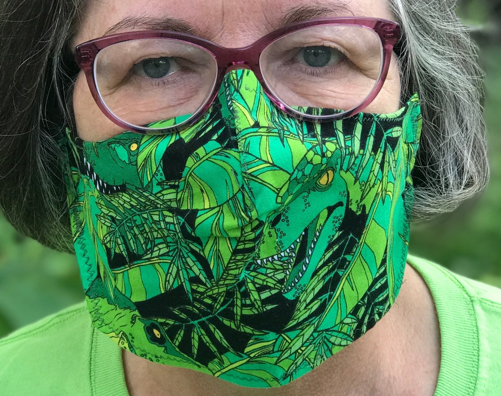 With the advent of the necessity of zoom for church services, my minister asked me to do a reading in April. Our Household prides itself in many things, two of which are our tech savvy (ok, the husband’s tech savvy) and our apparently infinite capacity to make something simple much, much more complicated. We gathered microphones, tripods, made cue cards, and produced an acceptable 4-minute iPhone video for a reading for the church service. Rave reviews. This became a focus of activity throughout the summer of 2020 and I produced several videos culminating in one in which I turned myself into a dinosaur. The best part was, it got me out of my funk at least partially.