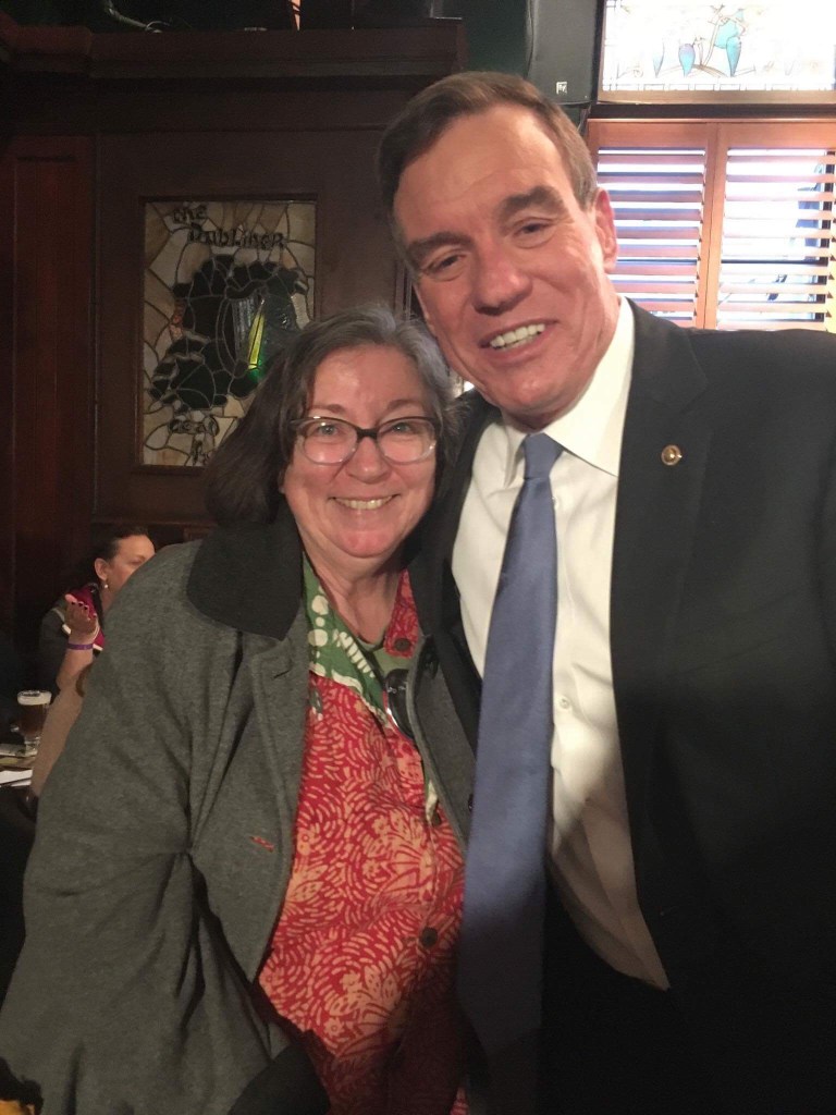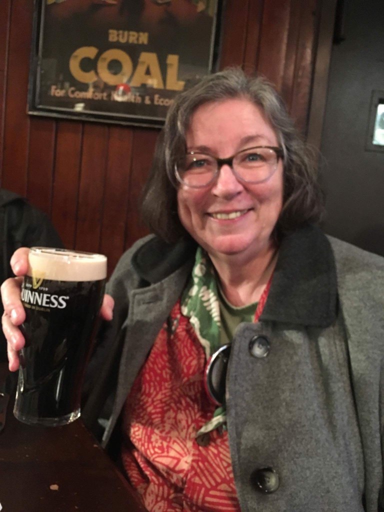 You can see from the photos how much fun this is. But I have to tell you, if you’re not willing to be jammed into a very small restaurant at 150% capacity, this is not for you. If you expect your coffee or muffin or sausages or Guinness to get to your table in a reasonable amount of time, this is not for you. And just remember, you’re going to be seated (if you get seated) with people you have never met. Of course they’re about to become your new best friends. It’s absolutely delightful! In 2017 I considered not attending, but older daughter convinced me that if I didn’t go I’d regret it. How right she was! We were seated with two protestors who had driven up from Florida to demonstrate. They were marvelous company and we were so glad we got to talk with them.